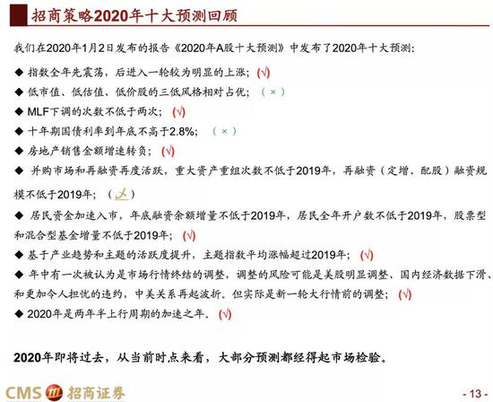 招商策略:2021年A股十大预测及2020年十大预测回顾