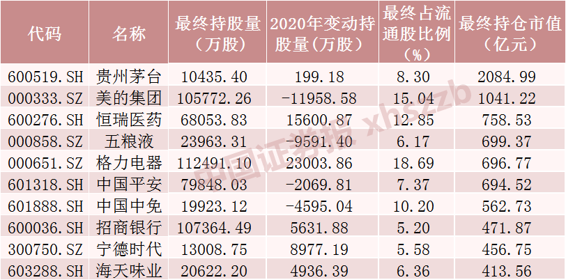 Choice数据显示,截至2020年12月31日,北向资金持仓市值为2.34万亿元,全年增加约9107亿元。减去2020年北向资金加仓的2089.32亿元,全年北向资金的持仓浮盈约7018亿元。年末北向资金持仓市值前十个股中,以消费股为主。