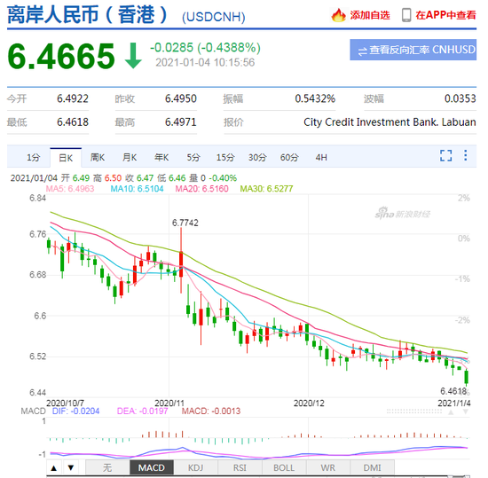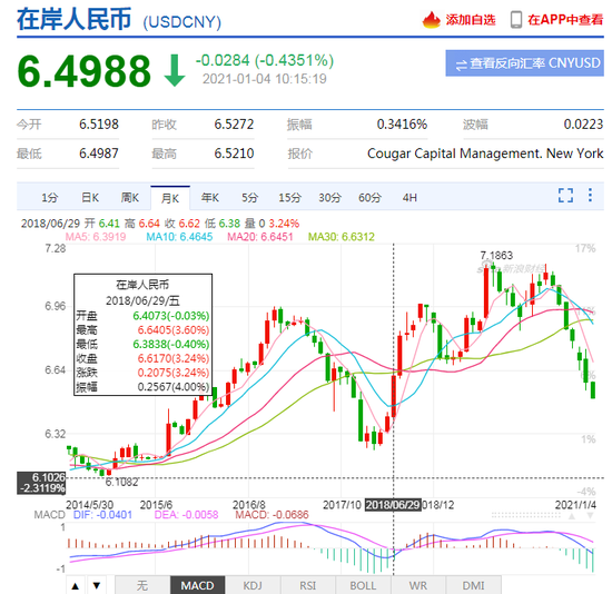 热点栏目1月4日,在岸人民币升破6.50关口,日内升值近300点,续创2018年6月份以来新高,离岸人民币升破6.47关口。