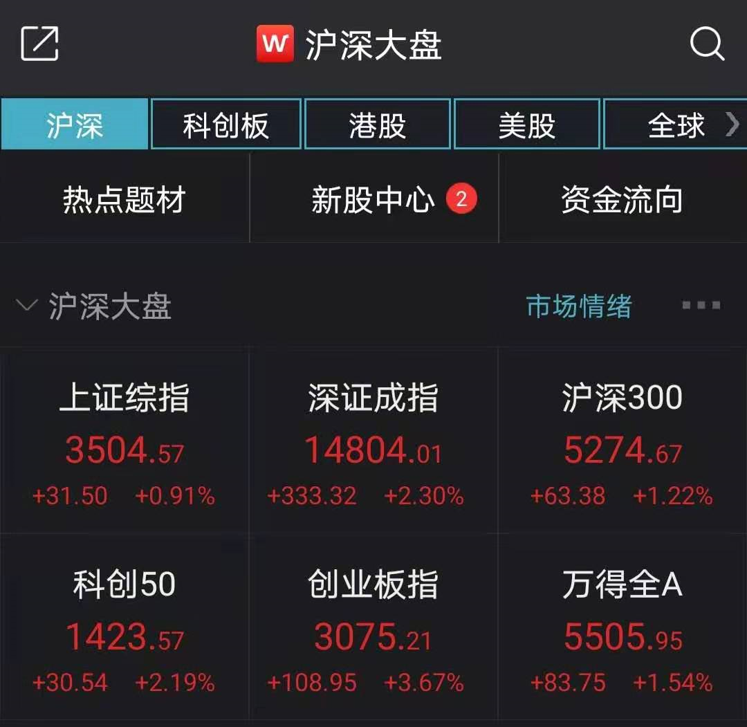 1月4日,上证指数午盘涨0.91%报3504.57点,为2018年1月以来首次突破3500关口;创业板指涨3.67%,续创逾五年新高;万得全A报5505.95点,涨1.54%,成交7100亿元;北向资金净买入8.45亿元。