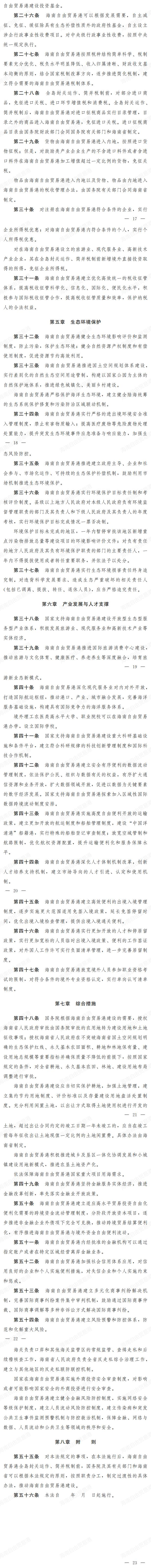 《中华人民共和国海南自由贸易港法(草案)》全文如下: