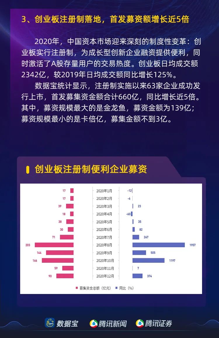2020年,新冠疫情一度打破社会经济生活的常态,给资本市场带来独一无二的冲击。股市却逆势而上,在注册制改革的推动下,A股IPO募资金额创近十年新高,科技股发力,大消费股、顺周期股大放异彩,北上资金、外资纷纷涌入A股市场,对中国经济投了赞成票······