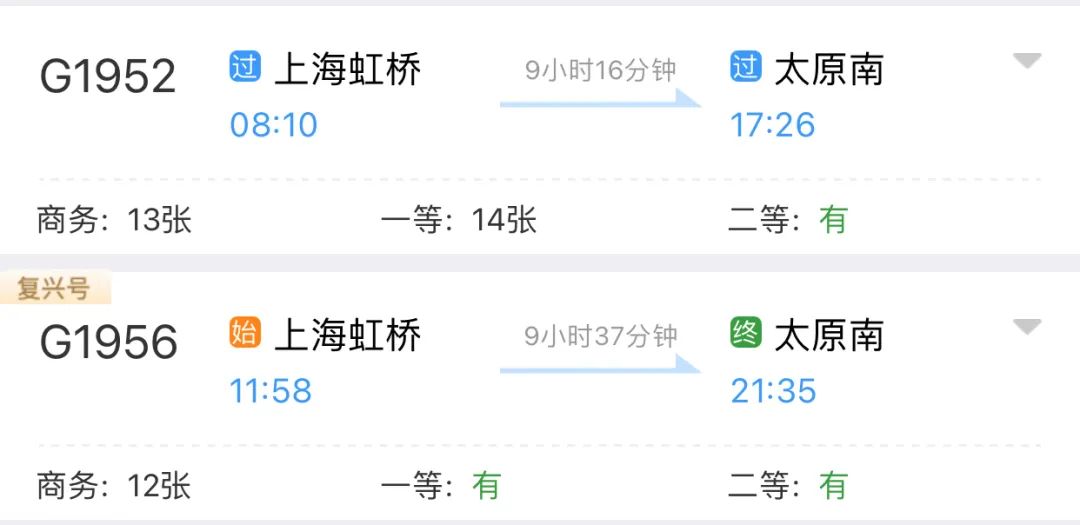 部分高铁车次