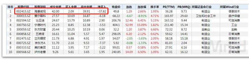 除了海康威视之外,还有几只热门股也走出了和“聪明资金”甩卖反向大涨的行情。