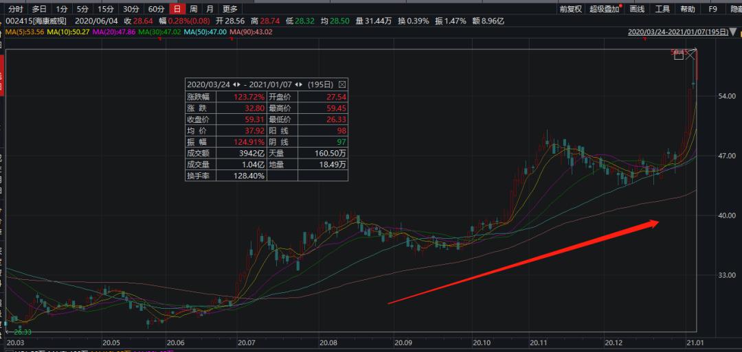 1月7日早盘,安防巨头海康威视再度走出了暴涨态势,开盘后股价高开高走,不到一小时,股价涨近7%左右,市值突破5500亿。而就在1月5日,海康威视股价还出现了放量涨停。