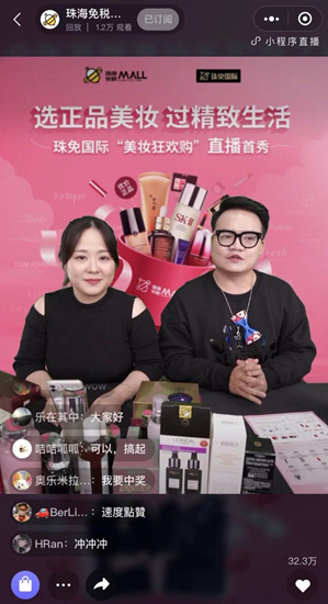 11月底,由格力地产、珠海免税共同打造的珠免国际,举办了以“选正品美妆·过精致生活”为主题的直播首秀,包括雅诗兰黛、希思黎、黛珂、资生堂、阿玛尼等全球20余款高端美妆品牌集聚,让消费者通过直播间领略了大牌美妆的魅力和零距海外免税店的惊喜价格。短短3个小时,直播间吸引超过1.2万人次参与观看,累计获得将近33万点赞量,体现了珠免国际强劲的发展动力。