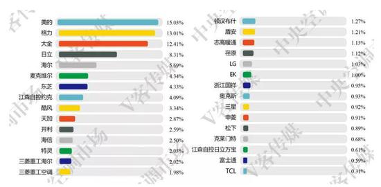 ▲2019年中国中央空调市场主要品牌占有率分布,来源:《机电信息·中央空调市场》