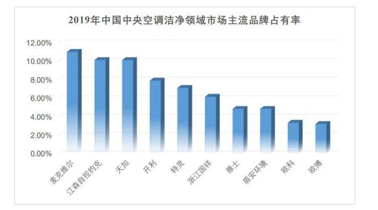 根据2019年中国中央空调洁净领域市场主流品牌占有率,国外传统品牌麦克维尔等仍占据主要位置,而且国产品牌格力、美的、海尔等瞄准机遇纷纷发力,并且表现不俗。