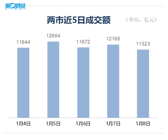 1月8日,沪深两市震荡整理,成交额连续第五日突破一万亿元。截至收盘,沪指跌0.17%,报收3570点;深成指跌0.24%,报收15319点;创业板指跌0.37%,报收3150点。盘面上,网络游戏、数字货币、生物科技等板块涨幅居前;水产、航天军工、钛白粉、白酒等板块表现低迷。