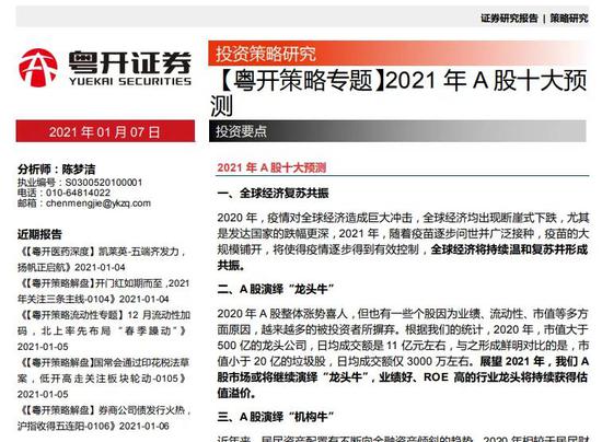 此外,粤开证券最新发布了“2021年A股十大预测”。这十大预测究竟靠不靠谱,牛眼君(每经牛眼:njcjnews)和大家一起来看一看。