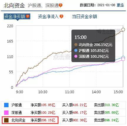 今日,沪指出现了一个为时5年来的标志性事件:盘中突破了2018年1月的前期高点,创出了5年来的新高。那么,在这个5年新高的位置,会不会存在回调的风险呢?北向资金肯定不会同意这一点,因为今日北向资金整整净流入达到了206亿元,也突破了过去一年中在2020年11月9日创下的前期纪录196.99亿元,创出历史次高,这无疑也是一个标志性的事件。