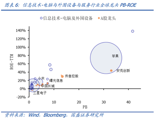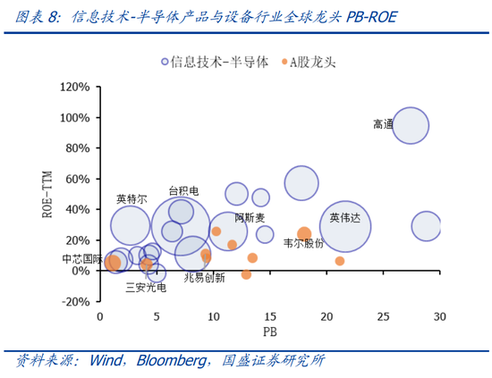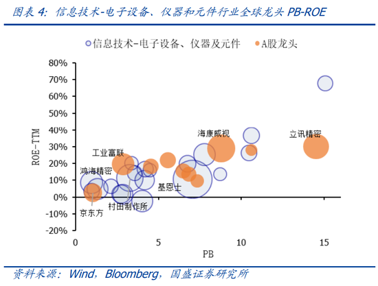 3、与海外龙头相比,当前A股大部分科技行业PB估值多为合理、ROE中等或更优,PB-ROE框架下多处于合理。