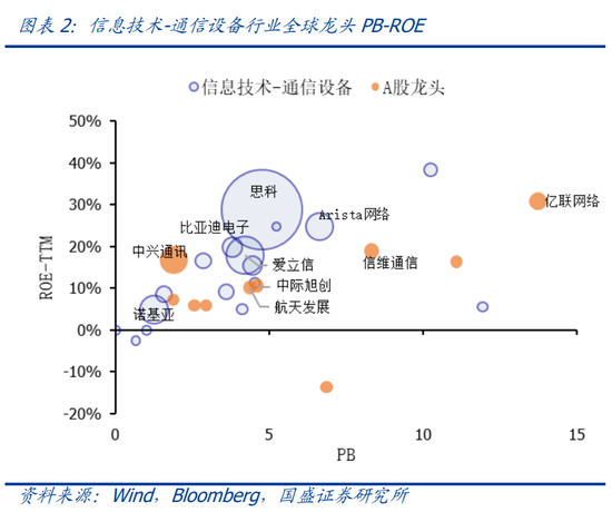 PB-ROE角度:A股龙头PB中等,ROE适中,PB-ROE下较为合理,亿联网络估值与业绩均较高。