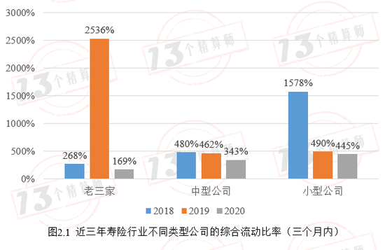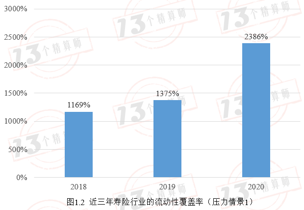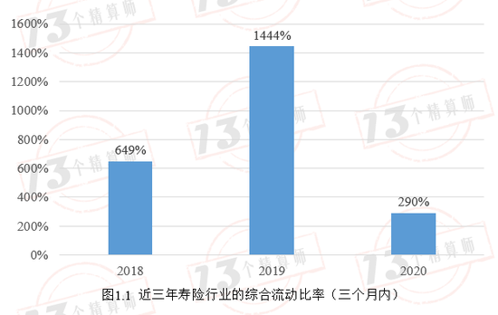 1、2020年三季度寿险行业综合流动比率为290%,为近三年最低;流动性覆盖率为2386%,是近三年来最高的。