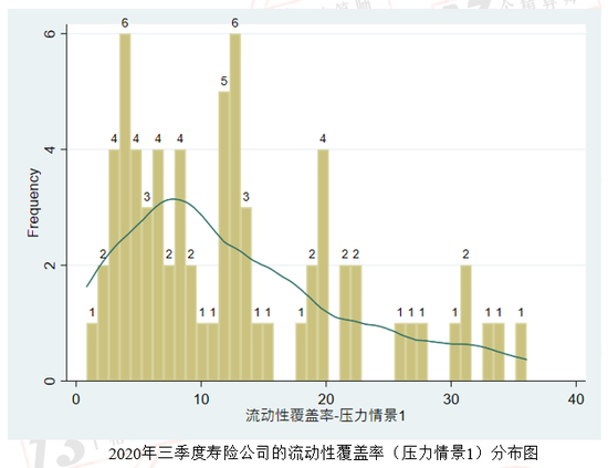 3、“13精”分别统计了77家寿险公司的综合流动比率(三个月内)和流动性覆盖率指标(压力情景1)。