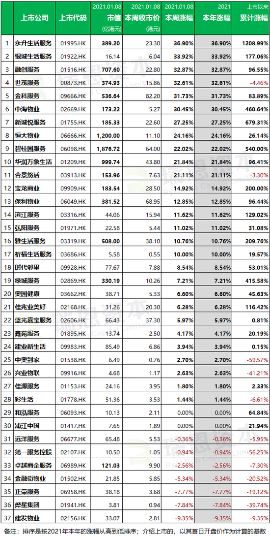 截至2021年1月8日,共有37家来自内地的物业管理公司在香港挂牌上市。