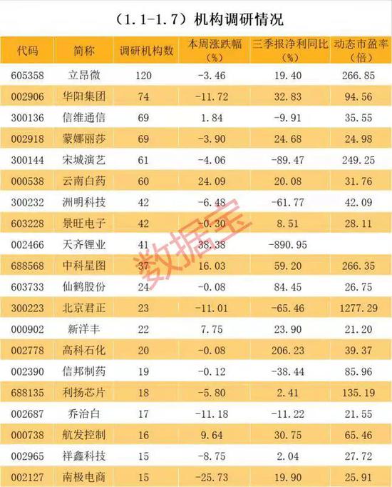 近一周机构调研个股数量有40多只,立昂微成为调研机构数量最多的股票。