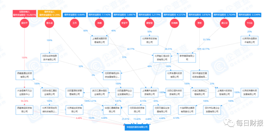 而持有60%股权的华信汇通的股东又有16家。往上层层穿透华信汇通持股最多的股东西藏海涵实业——大连恒泰——最后到个人股东夏自平。