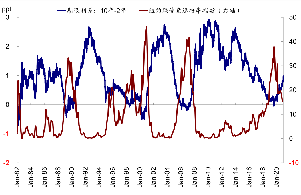 图表: 长端利率的快速上行也推动期限利差继续走高,目前2s10s利差已经扩大至98.2个基点,为2017年7月年以来新高