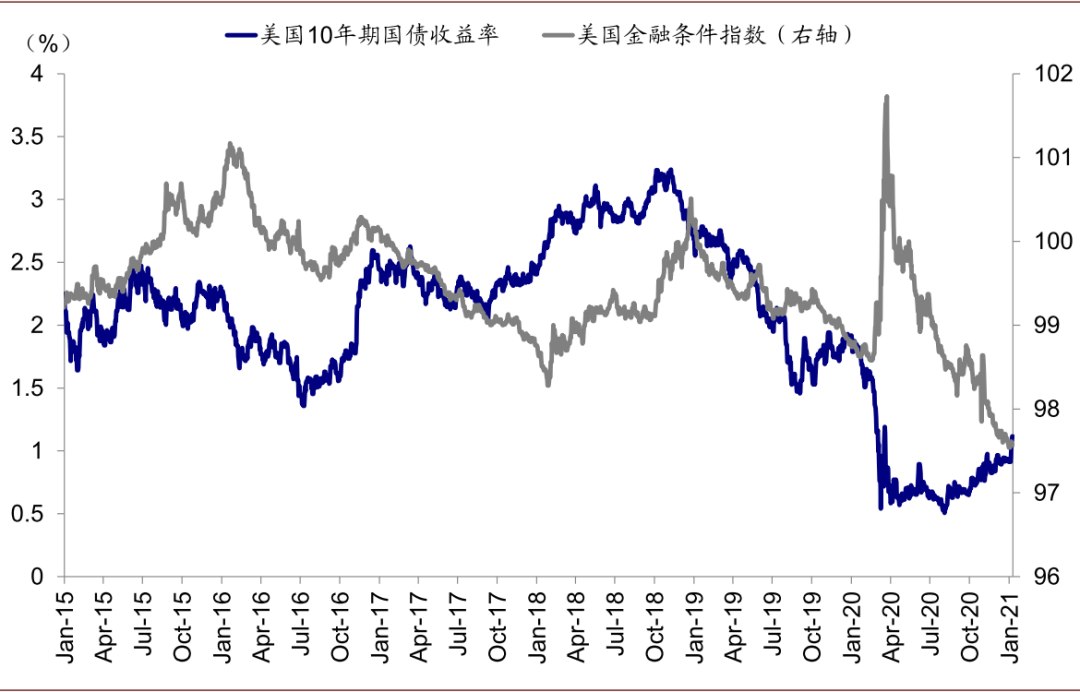 图表: 金融条件指数依然处于异常宽松水平,上周即便利率快速抬升,金融条件指数整体变化并不大
