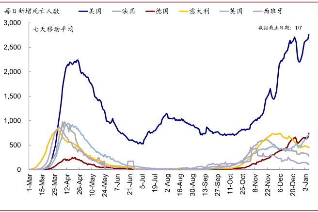 图表: 美国日度新增攀升至23万,英国一度超6万