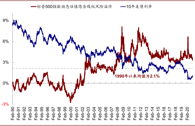 图表: 静态来看,10年期国债利率如果升到1.5%对应的静态估值约为27.4倍,较当前的30.5倍低10%左右
