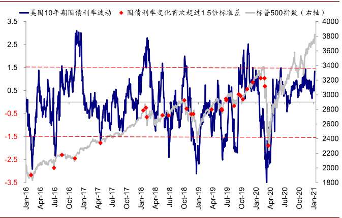 ► 最后需要提示的是,绝对水平是一方面,但短期变化速度很重要。虽然根据我们上文中分析,目前利率水平并不算高且仍有上行空间,但短期如果上行速度过快也将触发连锁反应,进而对市场造成冲击,2018年2月初便是典型案例,利率波动幅度超过2.5倍标准差(目前为1.3倍),进而造成市场大跌,因此短期利率的波动幅度值得密切关注。