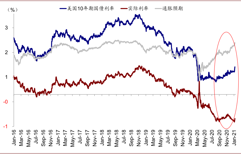 ► 原因与驱动因素:财政刺激预期推动利率走高,以实际利率为主。1月5日参议院选举最终结果为“民主党横扫”后形成的更大规模财政刺激预期是推动本轮全球risk on及利率快速走高的直接原因,这与我们在《“民主党横扫”的市场影响和政策含义》中的判断一致,周五非农数据意外下滑更是强化了这一预期,拜登也表示一上任便将努力推动上万亿美元规模的新刺激。此外,此前资金持续流入与较高的多头仓位在利率快速走高时的抛压可能也加大了上行压力。