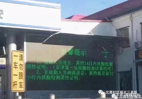 据此前消息,河北省非通勤人员确须进京的须持抵京前72小时以内核酸检测阴性证明,并严格遵守首都疫情防控政策规定;河北环京地区通勤人员,凭环京地区居住证明、在京工作证明、14日内核酸检测阴性证明可以正常通勤(近期首次通勤的须72小时内核酸检测阴性证明)。