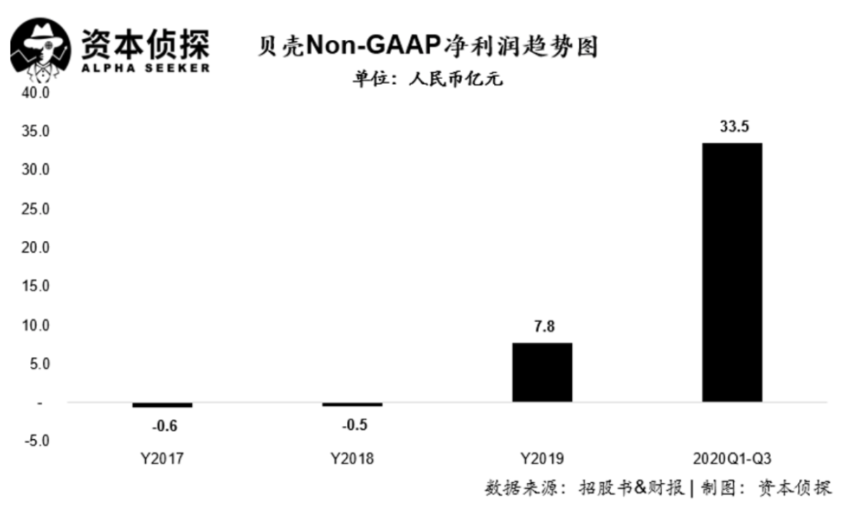 在盈利端,随着贝壳规模的持续扩大,公司的财务表现持续优化。