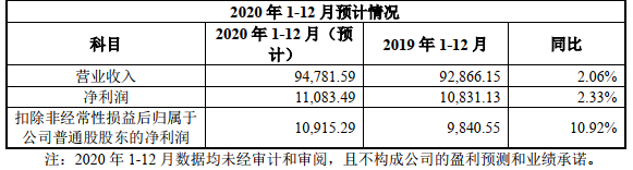 新亚电子预计2020年营业收入为9.48亿元,较上年同期上升2.06%;预计净利润为1.11亿元,较上年同期上升2.33%;预计扣非后归属于公司普通股股东的净利润为1.09亿元,较上年同期上升10.92%。