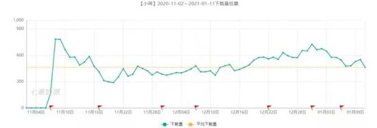 Apple Store开发者信息显示,小荷App的前身为2019年11月7日上线的“绿松果App”,初期定位于“医疗搜索+重病社区”,于2020年10月版本更新后更名为小荷。七麦数据显示,小荷App应用下载于11月正式推出后才有所增长,近两个月Apple Store预估下载量为32782,日均下载量462,增长平稳,说明小荷App还未开始进行规模推广。