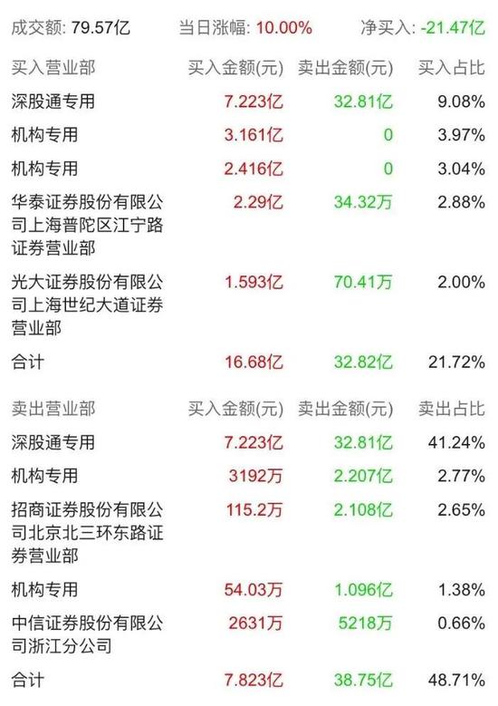 1月5日龙虎榜数据显示,深股通专用席位当日买入海康威视7.22亿元,卖出32.81亿元,净卖出金额达25.59亿元,卖出金额占海康威视全天成交金额比例超四成。