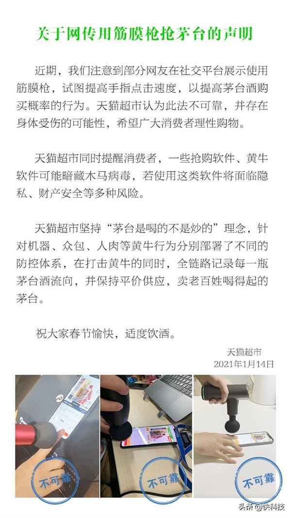 近日,有网友在社交平台展示使用筋膜枪抢茅台的操作,引起了围观和讨论。