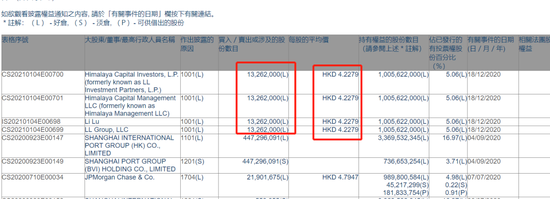 2020年12月18日,Himalaya Capital Investors, L.P.及Himalaya Capital Management LLC、Li Lu(李录)等相关主体对其进行加仓,变动后持股比例达到5.06%。