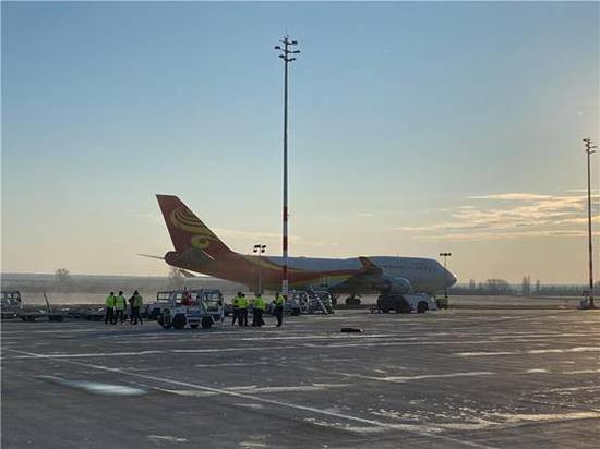 从中国深圳飞来的包机顺利抵达布达佩斯。均由中国驻匈牙利大使馆供图。