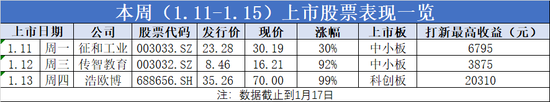 本周上市新股仅有3只,其中登陆科创板的浩欧博中一签收益超2万元,远超其余两家。