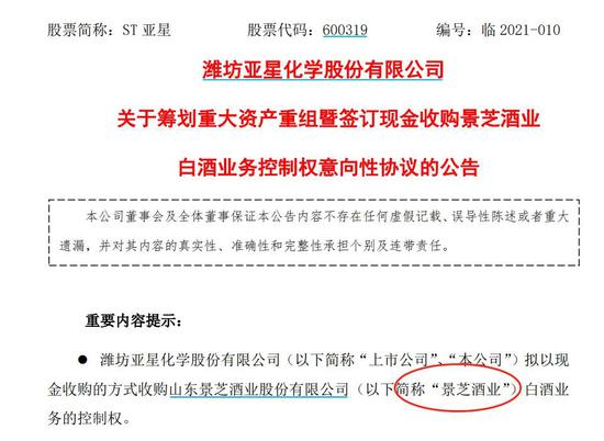 1月14日,ST亚星发布公告称,景芝酒业就上交所《关于ST亚星筹划重大资产暨现金收购事项的问询函》发布了《告知函》。