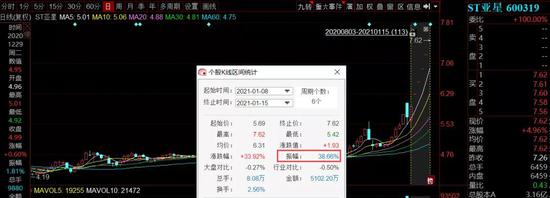 受此消息影响,ST亚星自1月11日起连续5个涨停板,加上此前一个涨停,ST亚星的最高涨幅38.66%。