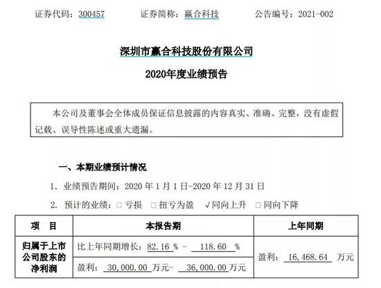而从业绩来看,赢合科技表现可谓亮眼。公司近日发布2020年业绩预告,预计2020年公司实现归母净利润3亿-3.6亿元,同比增长82.16%-118.60%。