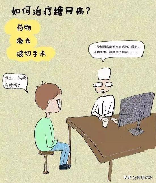 5.及时治疗:一旦糖尿病视网膜病变导致视力下降需积极配合眼科医生治疗。糖网病的眼部治疗主要包括激光、玻璃体腔注射药物及手术治疗。