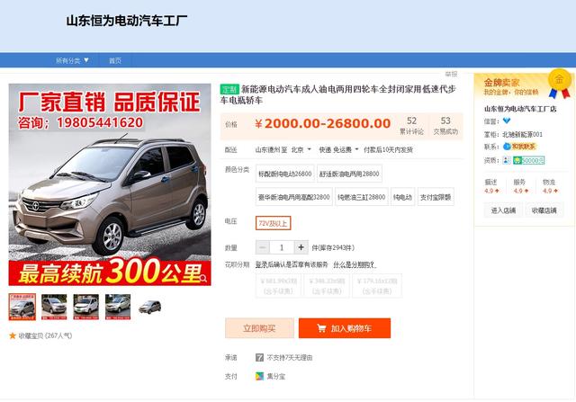 店家还卖更大一些的代步车,售价3万,外观已经与普通机动车无异。