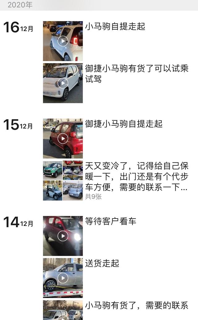 “我们现在不卖新车的,这辆也不是我们自己收的啊,是人家车友摇上汽车号了,就把代步车放在这了,我们只是帮着卖。”聊天过程中,店主不断强调自己的“代卖”身份。而所谓的车友,是指买了同一品牌代步车的车主,大家自发组建了一个微信群,不时在群里聊一聊开车的“心得体会”。