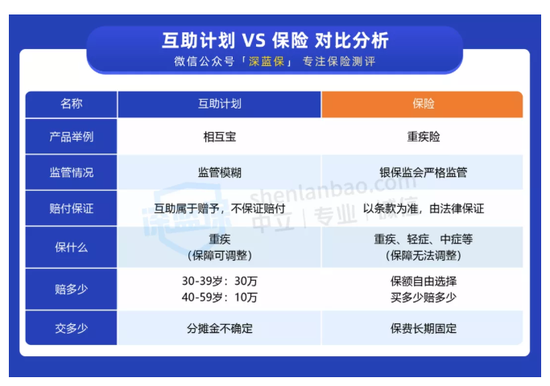 从表格可以看出,相比于保险,互助计划主要有以下4 大差异: