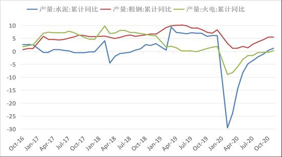 水泥方面,2020年生产同样呈现前低后高,1-11月累计同比达到了1.2%。累计产量达21.63亿吨,而从第二季度以来,各地水泥供需均呈现偏旺走势,尤其是进入四季度后,整体产量不降反升,南方地区价格更是逆势上涨。这主要得以于全年超预期的基建投资,除此以外,2020年房地产市场虽有走弱,新开工面积增速始终未能由负转正,但自二季度疫情后恢复生产以来,实际新开工面积同比仍有小幅回升,这也印证了四季度以来水泥消费持续火热的现实。在宏观经济扩张的大环境下,我们预计,基建行业仍将是我国经济发展中投资的重点,水泥产量即煤耗需求仍将保持小幅增长。