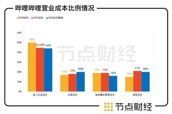 B站深陷盈利泥沼,除了因为营销方面的负重,还和分成成本(即平台从收入中分给利益相关方的部分)有关。B站最重要的两项收入——游戏和直播都需要给相关利益方提供分成。游戏业务方面,B站自研游戏较少,多是联运或代运模式,公司需要给游戏厂商分享约50%的利润;直播业务方面,平台同样需要与主播共享利益。