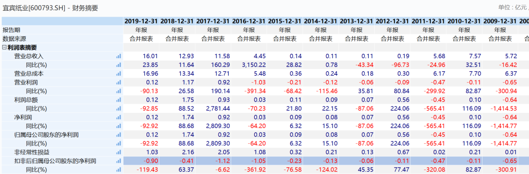 实际上,这已不是宜宾纸业首次扣非净利润亏损,从2005年开始,宜宾纸业已连续15年扣非后净利润为负。扣非净利润一直为负,说明这15年来宜宾纸业的盈利全不是靠主业。