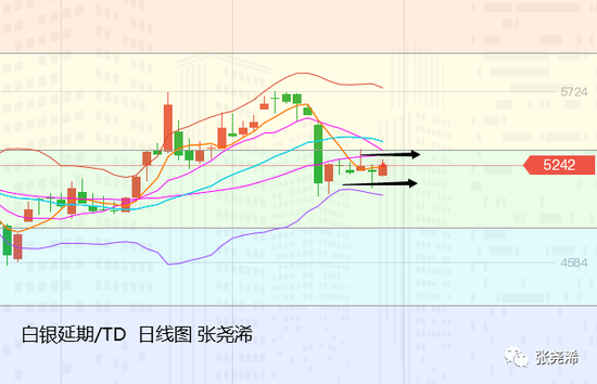 白银TD:银价周一也自开于5205元/千克后先行探底至5076元,之后回升收长脚下影线,虽收于5196元仍为阴线,但也增加了其后市的看涨预期;延续至今日周二白盘,自昨日晚间下行的开盘价5171元开始走高,目前已转阳上行,截止10点前最高触及5270元上方。整体上有阻力,下有支撑,震荡对待即可。