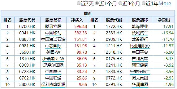 从近1个月南向资金的买入规模来看,巨量资金高度集中于腾讯控股、中国移动、中国海洋石油、中芯国际、美团等个股,近1个月成交额超千亿。