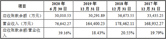 报告期内,明泰股份应收账款余额分别为3.34亿元、3.67亿元、3.03亿元和3.00亿元,占营业收入的比例分别为19.79%、20.55%、18.43%和39.16%;应收账款账面价值分别为3.17亿元、3.44亿元、2.86亿元及3.00亿元,占各期末总资产的比例分别为16.37%、13.98%、13.38%及14.31%。